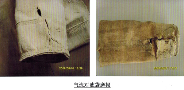 3、除塵器在負(fù)壓的作用下,殼體漏風(fēng),粉塵高速?zèng)_刷濾袋造成磨損。
